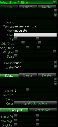 The Weather Menu is used to create and modify weather effects. You are allowed to create many different effects and trigger them when necessary. Weather